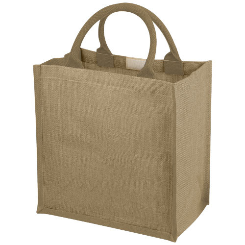 Сумка-тоут Chennai - идеальный партнер для походов в парк, на пляж или в продуктовый магазин. Благодаря джутовому материалу она является экологичным выбором. Сумка имеет ламинированное открытое отделение и ластовицу, что делает её идеальной для переноски тяжёлых предметов. Хлопковые ручки гарантируют хороший и удобный захват, а дополнительная застежка-крючок и петли обеспечивают сохранность всех вещей. Сделано в Индии и сертифицировано OEKO-Tex. Устойчивость к весу до 10 кг.