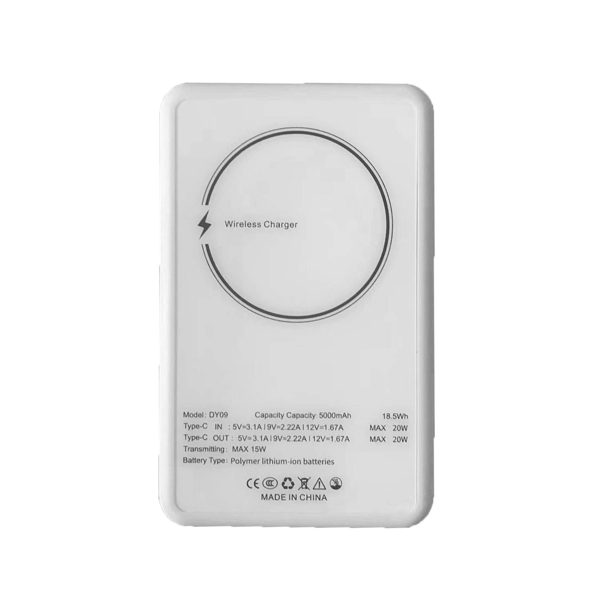 Магнитная беспроводная зарядка/500 игр. Размер 65x103,5x16 мм. Комплектация: белый зарядный кабель длиной 50 см (от Type C к Type C), 1 шт., руководство, упаковка: белая коробка размером 136 х 97 х 39 мм, Емкость 5000 мАч, Вход: TYPE-C: 5 В-3,1 А | 9 В-2,22 А | 12 В-1,67 А МАКС.: 22,5 Вт; 1 порт зарядки. Беспроводная зарядка: 15 Вт