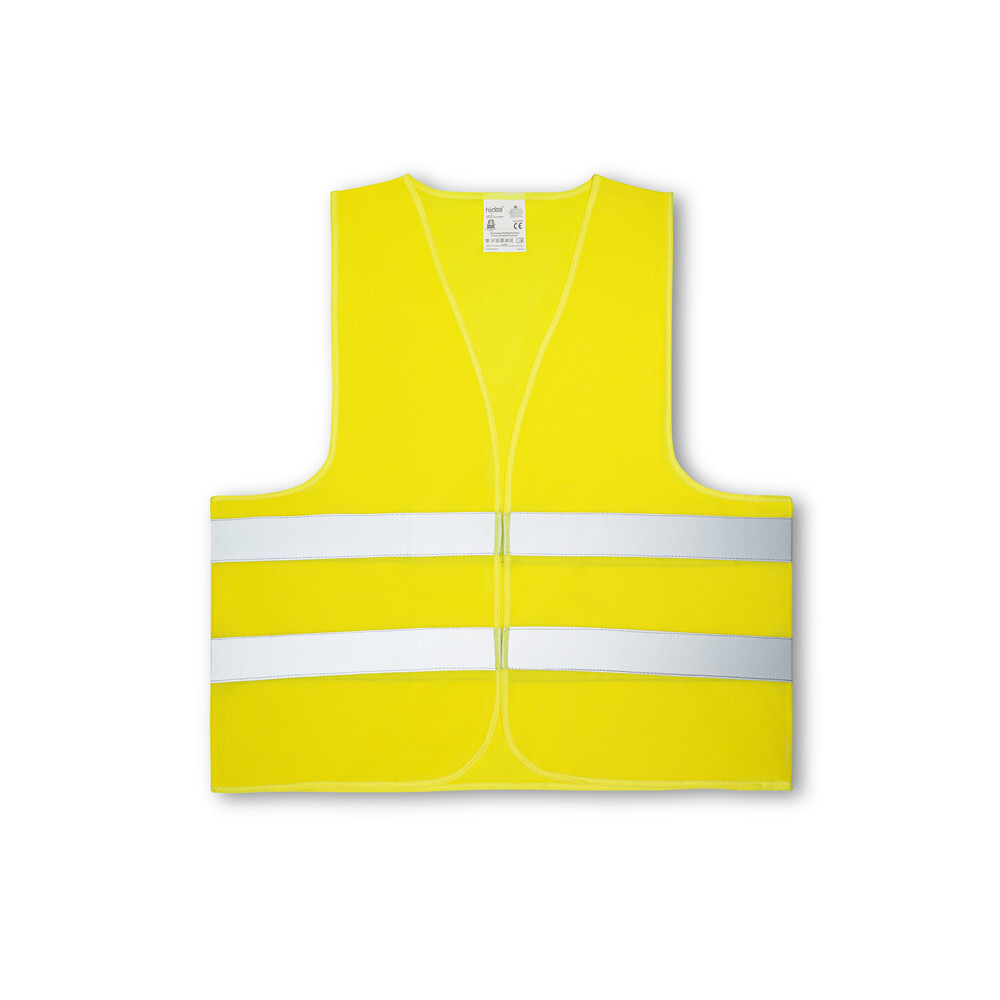 Жилет повышенной видимости из 100% полиэстера, сертифицированный по стандарту EN ISO 20471 класс 2. Светоотражающий жилет с 2 горизонтальными светоотражающими полосами и застежкой-петлей на переднем отверстии. Один размер: 670 x 700 мм